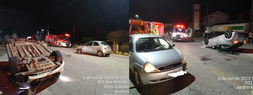 No local ocorreu uma colisão entre dois veículos. Um Hyundai Veloster conduzido por uma jovem de 24 anos e um Ford Ka, dirigido por um homem de 53 anos. Com o impacto, o Veloster capotou na pista.