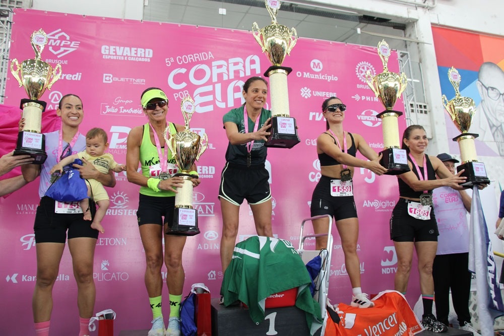 Mais de 1500 atletas se reuniram na manhã deste domingo, 5 de outubro, para participar da 5ª edição da Corra por Elas, evento promovido pela Associação das Micro e Pequenas Empresas de Brusque e Região (AmpeBr). Além de estrear um novo trecho da Avenida Beira Rio, a corrida alcançou mais um feito inédito: a doação de R$ 159.300,00 para a Rede Feminina de Combate ao Câncer.