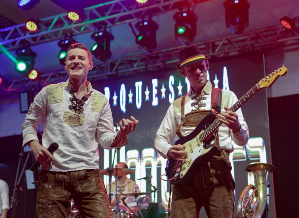 O Musikplatz abre às 21h com a Banda do Barril. À meia-noite, o palco será o espaço para o primeiro concurso de Chopp em Metro, uma das brincadeiras mais disputadas da festa. Depois, o grupo Madame Frau segue animando o público com o melhor da música tradicional até as 3h da manhã.