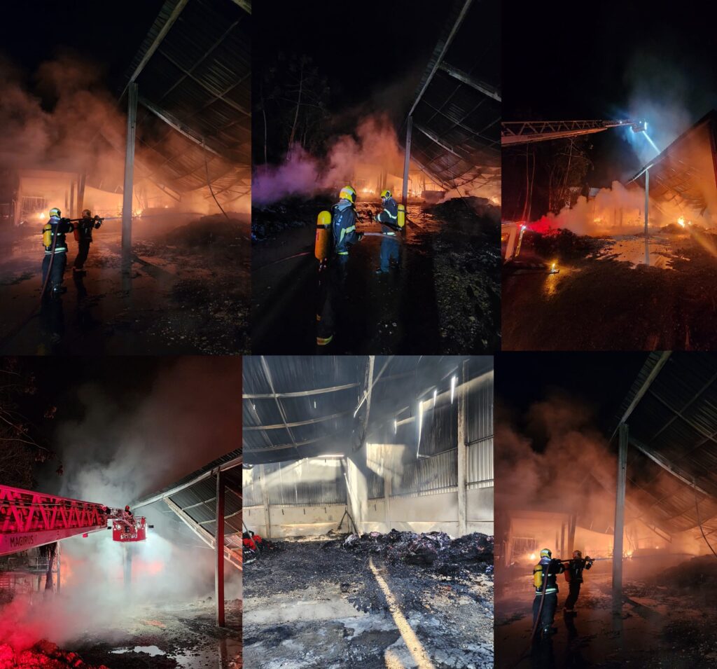 Corpo de Bombeiros atualiza combate a incêndio que destruiu galpão de empresa em Guabiruba