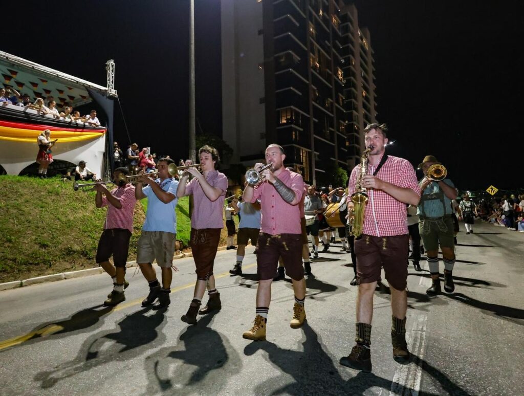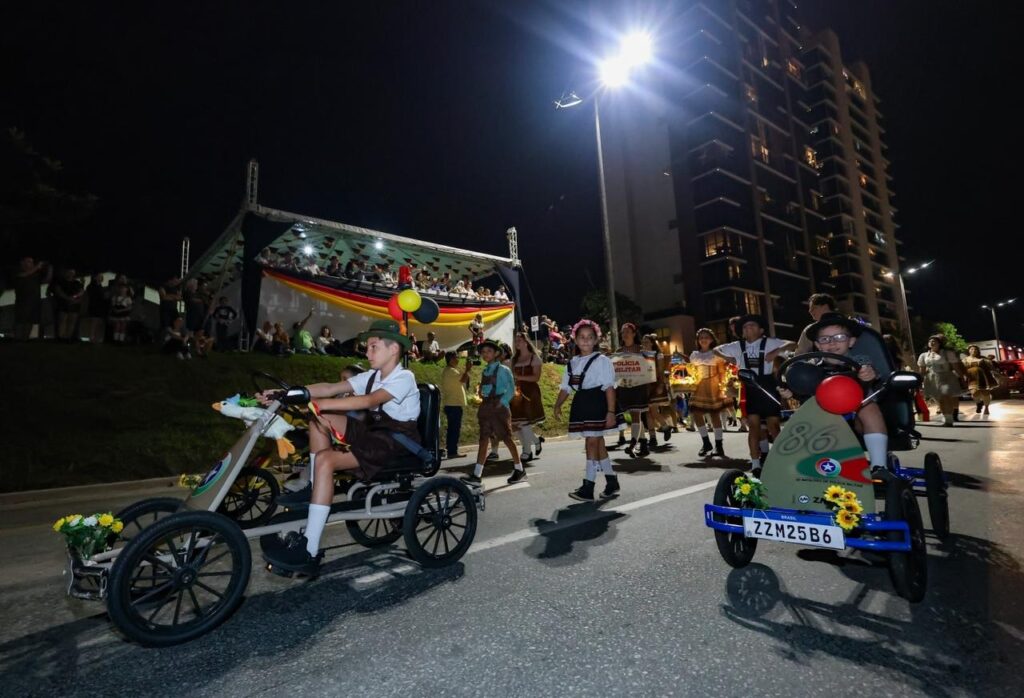 O prefeito André Vechi destacou o quanto o desfile é esperado pelos fenafesteiros. “O desfile é a cereja do bolo, que tanta gente esperou, o tempo ajudou, e hoje vamos celebrar aqui o desfile, para depois seguir ao pavilhão e continuar a festa. Estamos muito felizes, a Beira Rio ficou cheia e muitas pessoas vieram prestigiar”.