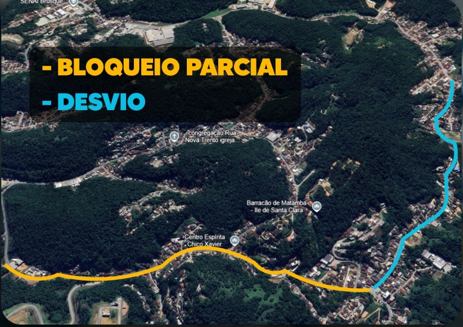 Durante o período de intervenção, o trânsito proveniente dos bairros Paquetá e Cedrinho, em direção ao Centro, será desviado pela rua Carlos Ristow, com acesso posterior pela rua Florianópolis.