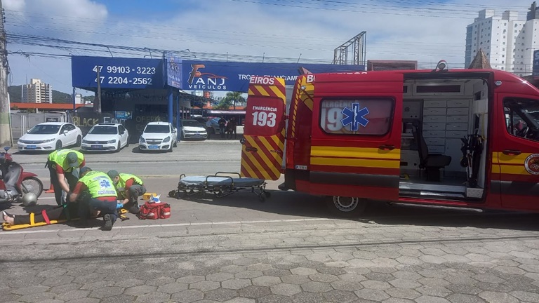 Uma mulher ficou ferida após uma colisão envolvendo um Hyundai HB20, com placas padrão Mercosul, e uma motocicleta Honda Biz, de Brusque. O acidente ocorreu por volta das 9h desta terça-feira, 25 de novembro de 2025, na Rodovia Antônio Heil, no bairro Centro II, em Brusque.