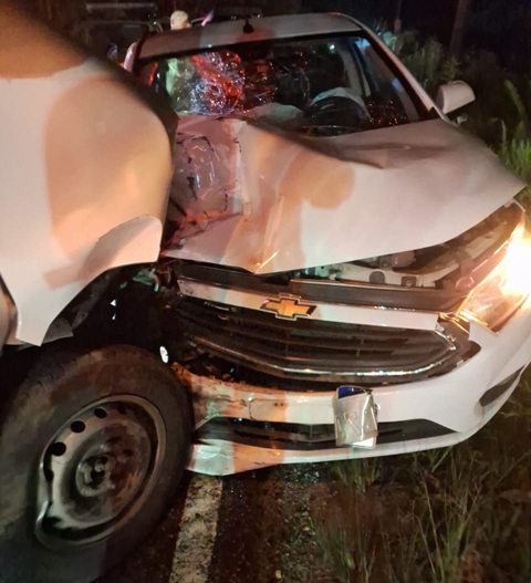 Ao chegarem ao local, os bombeiros confirmaram que se tratava de uma colisão frontal envolvendo um Renault Master branco e um Chevrolet Onix. No Renault havia apenas uma vítima, o condutor, um homem de 26 anos. Ele foi encontrado fora do veículo, consciente, porém desorientado, e sem lesões aparentes. O motorista recusou atendimento da equipe de socorro e permaneceu no local.