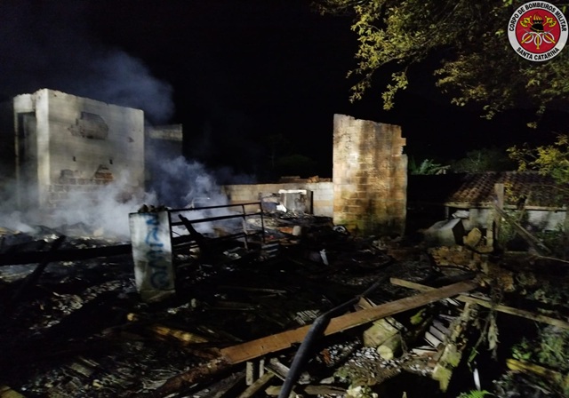 Uma residência abandonada foi completamente destruída por um incêndio na madrugada deste domingo, 7 de dezembro, no bairro Holstein, em Guabiruba. O imóvel, que não possuía energia elétrica e estava desocupado, ficava localizado na Rua Ernesto Pühler.