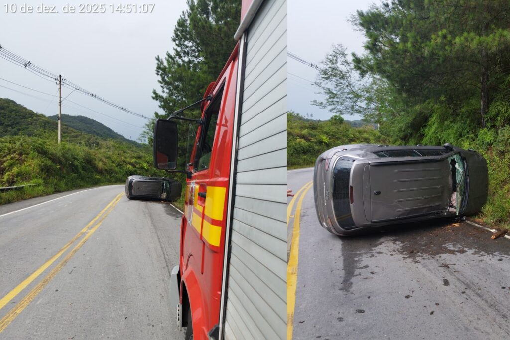 Um capotamento foi registrado na tarde desta quarta-feira (10) na Rodovia Pedro Merízio, no bairro Salto, em Botuverá. A ocorrência foi atendida pelo Corpo de Bombeiros Militar por volta das 14h39, com apoio da Polícia Militar.