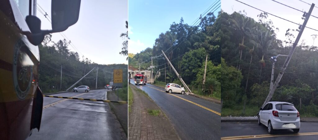 Um carro colidiu contra um poste na Rua Nova Trento, no bairro Azambuja, em Brusque, no fim da tarde desta quarta-feira (10). O acidente foi registrado por volta das 18h, mobilizando equipes do Corpo de Bombeiros.