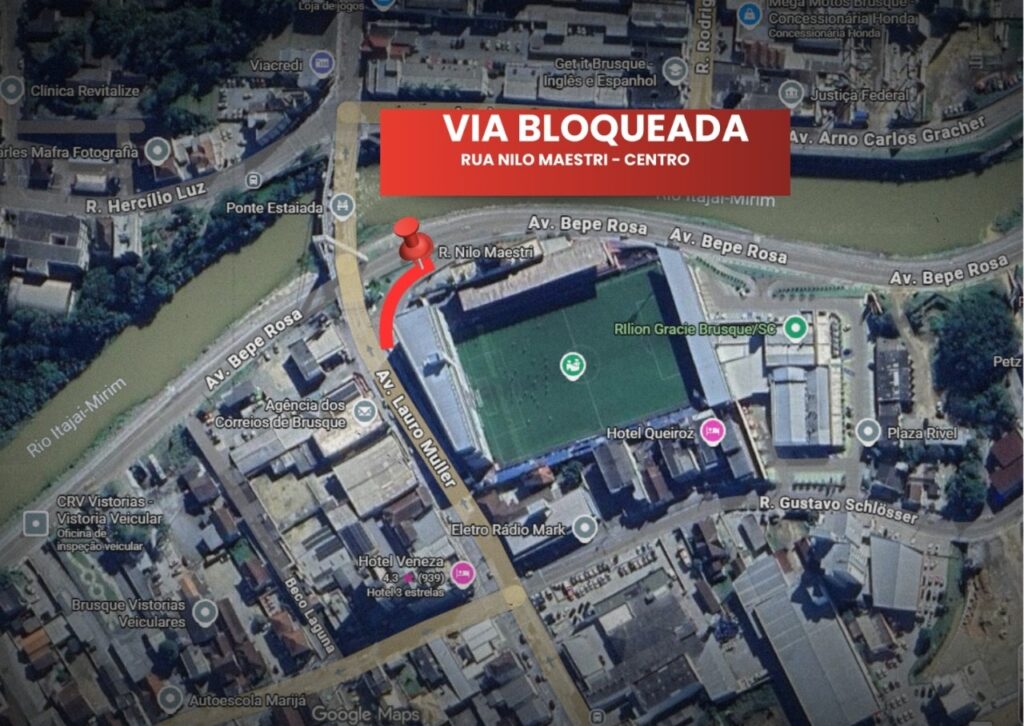 A rua Nilo Maestri, no Centro, terá o tráfego totalmente interrompido nesta quarta-feira (17) para a execução de uma obra de drenagem programada pela Secretaria de Obras. A interdição será realizada no trecho localizado ao lado da Ponte Estaiada, junto ao estádio Augusto Bauer.