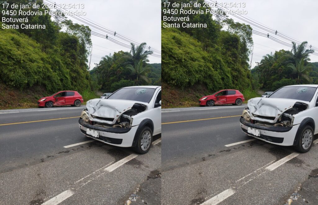 Um acidente de trânsito envolvendo dois veículos foi registrado por volta das 13h37 desta terça-feira na rodovia Pedro Merísio, no bairro Pedras Grandes, em Botuverá, nas proximidades da empresa Baterias Erbs.