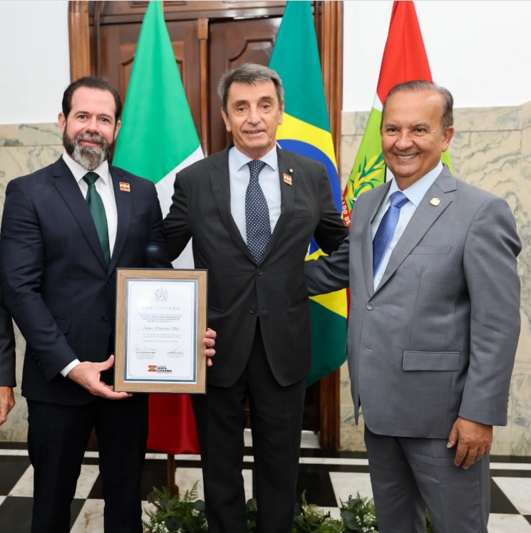 Durante a missão, o embaixador Alessandro Cortese também se reuniu com o governador de Santa Catarina, Jorginho Mello. No encontro, foram discutidos temas estratégicos como a cooperação econômica, cultural e científica, o fortalecimento da rede consular, além de novas oportunidades de colaboração e intercâmbios econômico-comerciais, especialmente à luz do Acordo entre a União Europeia e o Mercosul.