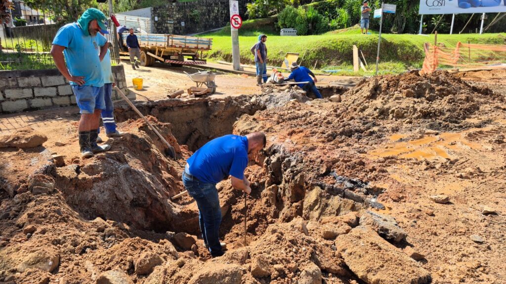 Nesta manhã de quarta-feira (21), durante os trabalhos de drenagem na rua Primeiro de Maio, aconteceu um rompimento na adutora da região. Para realizar o conserto será necessário interromper o abastecimento para regiões do bairro Primeiro de Maio e rua Nova Trento.
