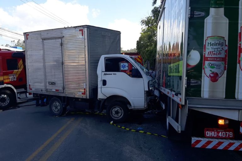 Um acidente envolvendo dois caminhões mobilizou equipes de resgate na tarde desta sexta-feira, 6 de fevereiro de 2026, na Rodovia Ivo Silveira, no bairro Volta Grande, em Brusque.