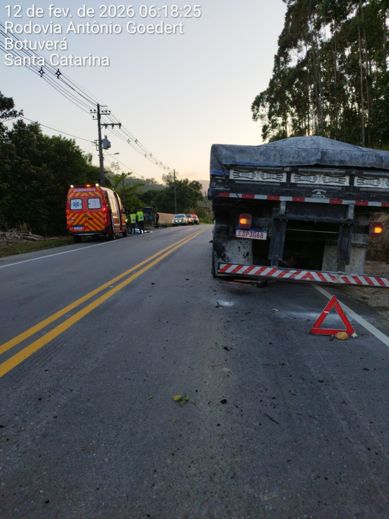 A ocorrência envolveu uma colisão entre uma motocicleta e um caminhão. Quando a guarnição do Corpo de Bombeiros chegou ao local, a Polícia Militar já prestava apoio.