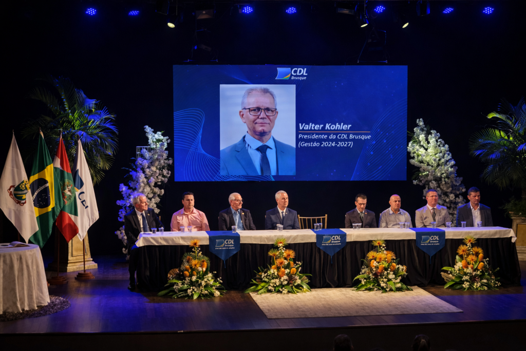 A Câmara de Dirigentes Lojistas de Brusque (CDL Brusque) realizou na noite desta quarta-feira, 25 de fevereiro de 2026, a solenidade de posse da nova diretoria para a gestão 2026/2027. O empresário Antônio Roberto Pacheco Francisco assumiu oficialmente a presidência da entidade em cerimônia realizada no Teatro do CESCB, que reuniu autoridades, empresários e representantes da comunidade.