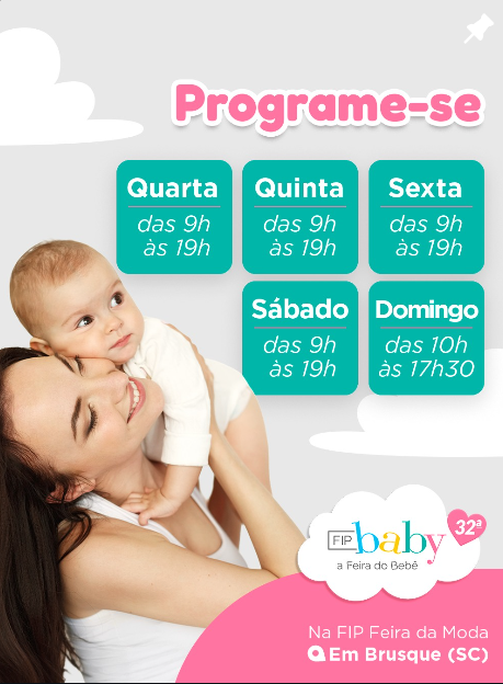 A partir desta quarta-feira, 11 de março, Brusque recebe mais uma edição da FIP BABY. O evento, que acontece no piso térreo do estacionamento da FIP (Feira da Moda), reúne expositores de diversos estados com foco no universo infantil, desde o enxoval até móveis e brinquedos. A entrada é gratuita.