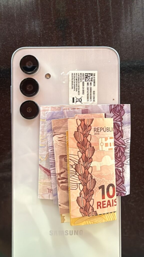 Foi encontrado um celular Samsung, com capinha rosa e dinheiro atrás. O aparelho caiu de um carro e quebrou. A quem pertencer, favor entrar em contato através do telefone/WhatsApp: (47) 99132-8482.