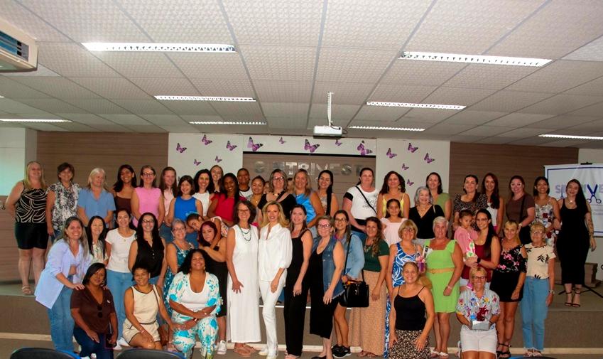 O encontro contou ainda com a participação da vereadora Bete Eccel, que realizou uma dinâmica com as participantes e falou sobre a luta das mulheres, além de apresentar projetos e ações voltados à proteção e à garantia de direitos.