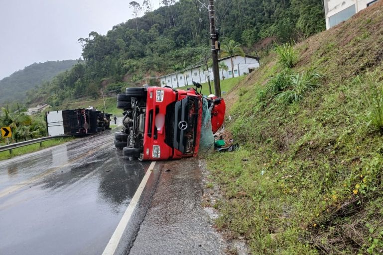 Colisão entre caminhões é registrada na SC-486 em Botuverá